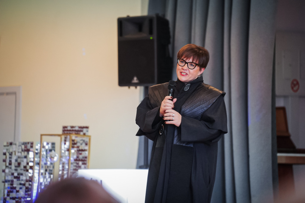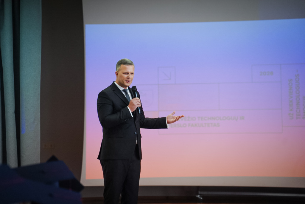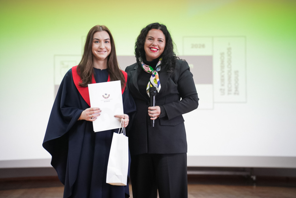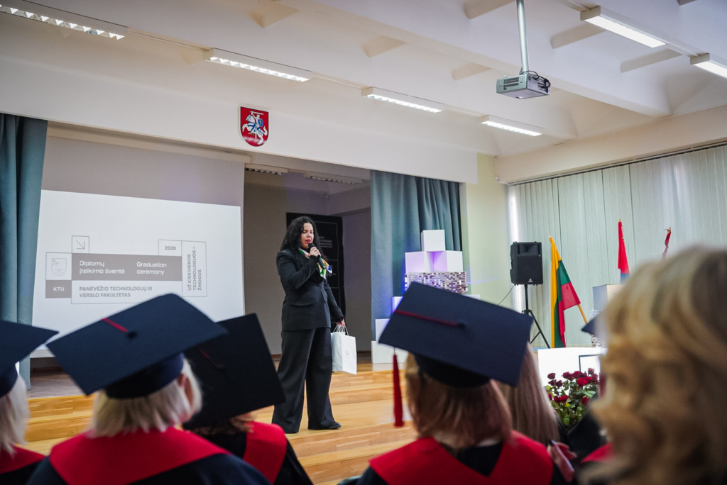 Žinios atveria duris, tačiau kaip pro jas įeisite, priklauso nuo jūsų. Tikroji kompetencija – tai žmogiškumas, pagarba ir atsakomybė. Linkiu niekada nepavargti siekti žinių ir kartu išlaikyti šviesą savyje, kad ji ne akintų, o įkvėptų. Ačiū, kad pasirinkote mūsų Alma mater, ir sėkmės kuriant atsakingesnį, gražesnį pasaulį.“